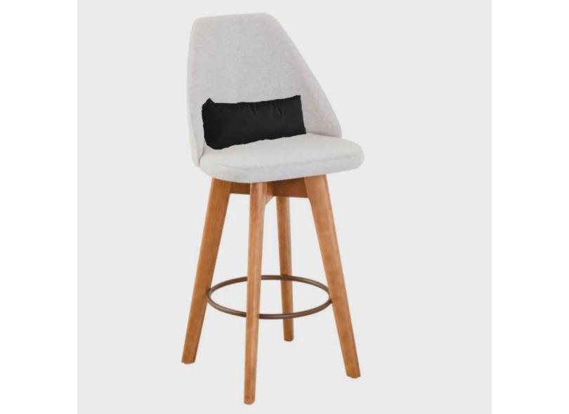 Banqueta Alta Maya Giratória Com Encosto Linho Bege Claro e Almofada Suede Preto - Aurora Line