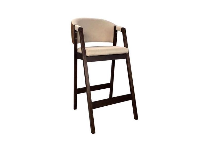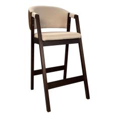 Banqueta Alta para Balcão Ravena em Madeira Maciça Capuccino Linho Bege Marrom CCS