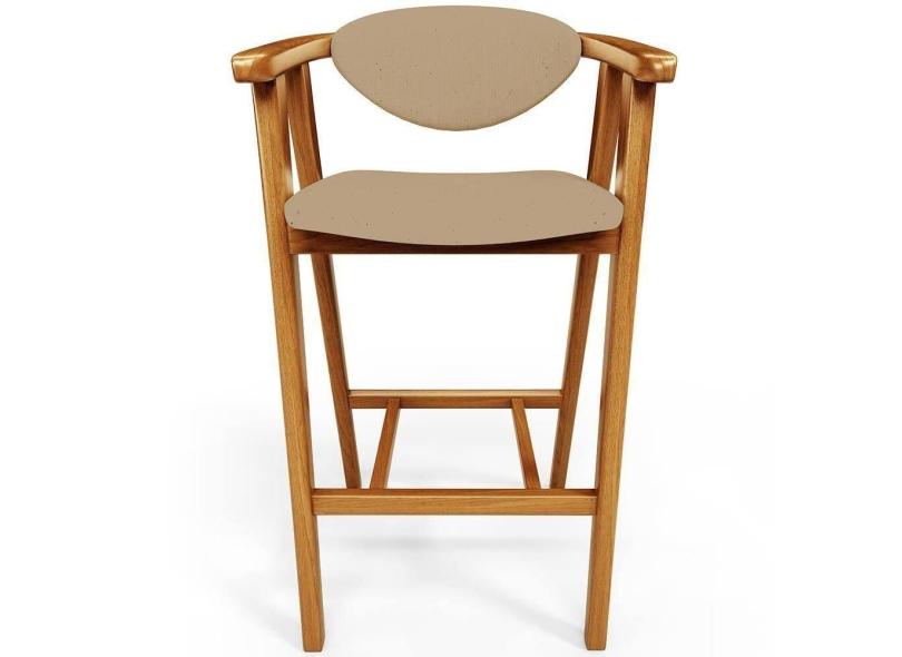 Banqueta Alta Para Cozinha Bancada Bar Sala De Jantar Fixa Cecília L02 Linho Bege Escuro