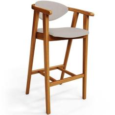 Banqueta Alta Para Cozinha Bancada Bar Sala de Jantar Fixa Cecília L02 Linho Bege - Lyam