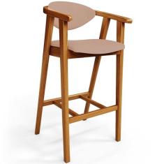 Banqueta Alta Para Cozinha Bancada Bar Sala De Jantar Fixa Cecília L02 Linho Rosê