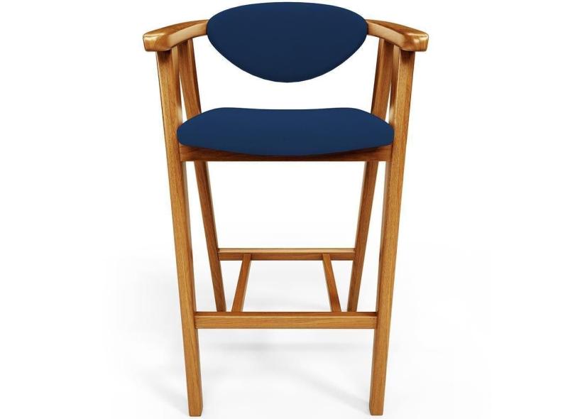 Banqueta Alta Para Cozinha Bancada Bar Sala De Jantar Fixa Cecília L02 Suede Azul Marinho