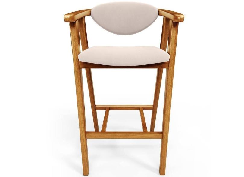 Banqueta Alta Para Cozinha Bancada Bar Sala De Jantar Fixa Cecília L02 Suede Bege