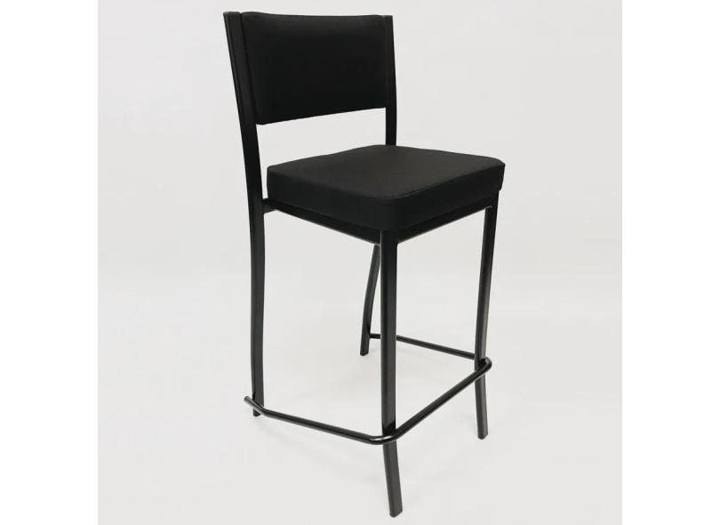 Banqueta alta para cozinha Empilhável preta assento e encosto estofados em linho cor preto - Poltronas do Sul