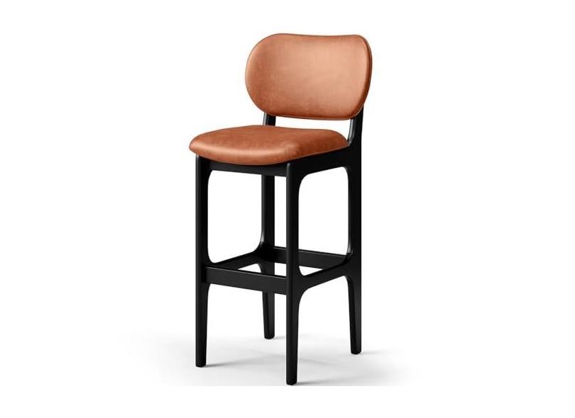 Banqueta Alta Para Cozinha Madeira Fixa Betta L02 Preto Couríssimo Camel - Lyam Decor