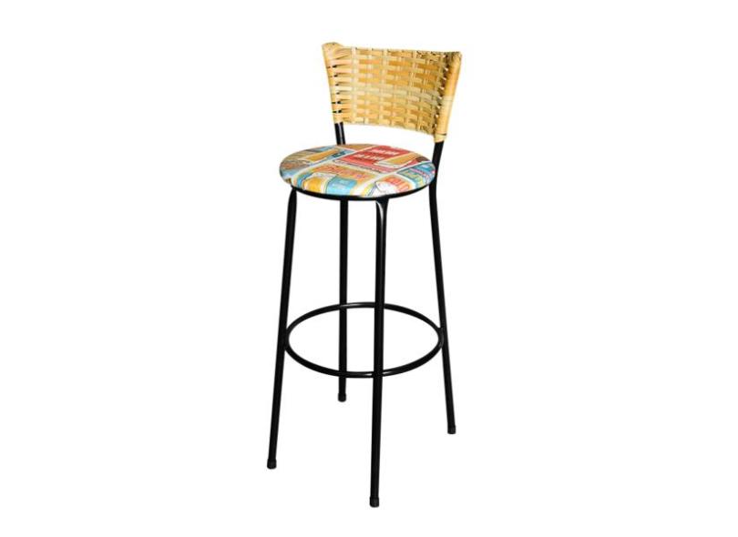 Banqueta Alta Para Cozinha Ratan Palha Preta Estofado Cerveja