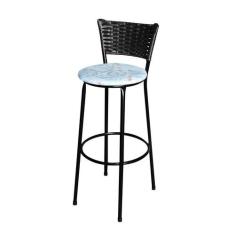 Banqueta Alta Para Cozinha Ratan Preta Estofado Floral - Lamar Design