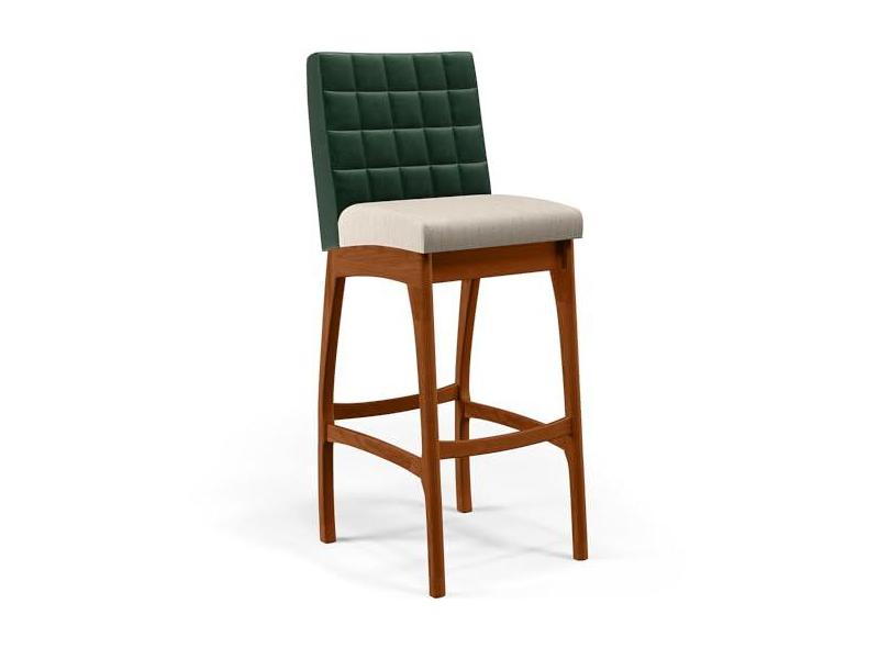 Banqueta Alta Para Cozinha Sala De Jantar Fixa Mila L02 Facto Verde Musgo Linho Cru - Lyam Decor