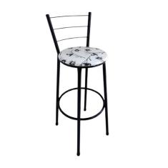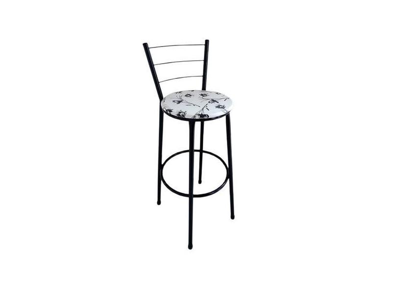 Banqueta Alta Preta com Encosto Assento Branco Floral Jaddi