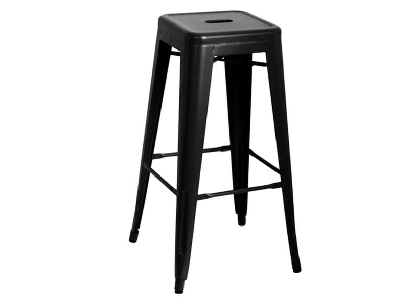 Banqueta Alta Tolix Preta Sem Encosto Aço Industrial