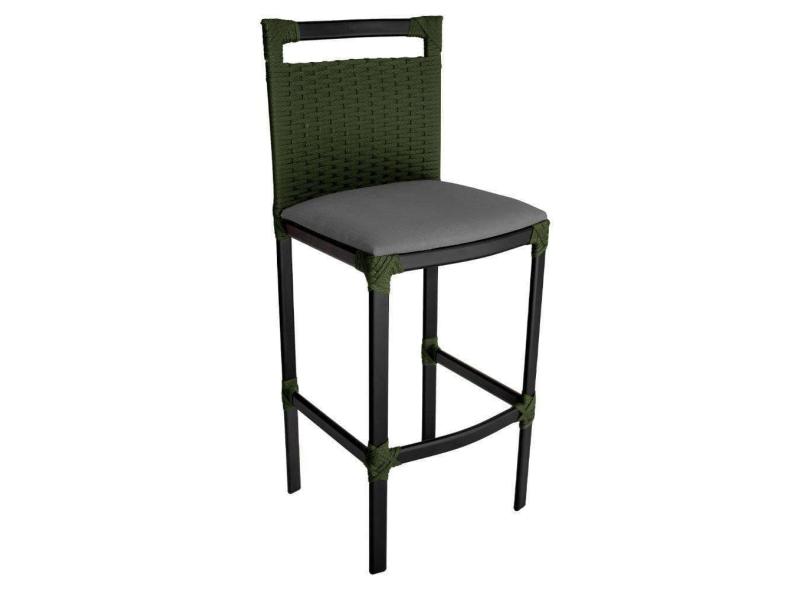 Banqueta Alta Vigor Em Alumínio E Corda Náutica Verde Verde Com Cinza