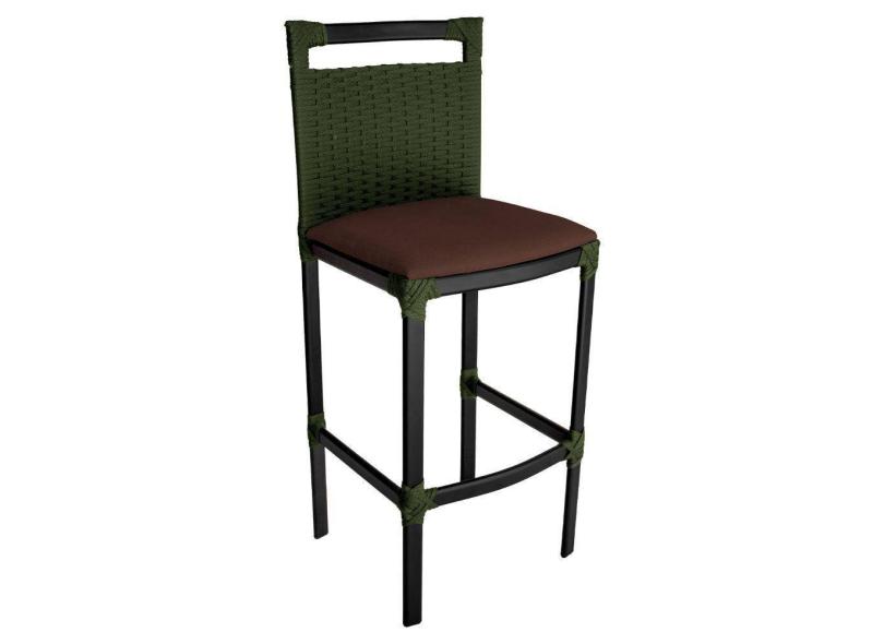 Banqueta Alta Vigor Em Alumínio E Corda Náutica Verde Verde Com Marrom