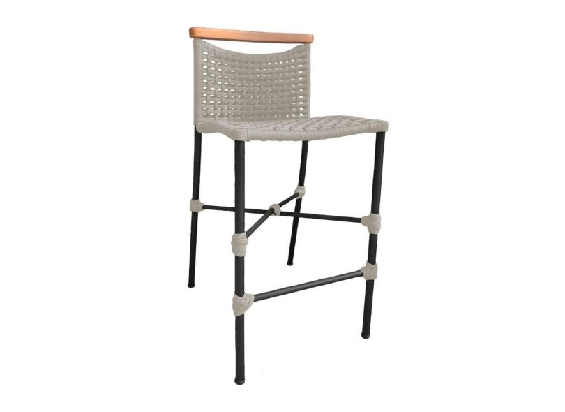 Banqueta Anne em Corda Náutica Base em Alumínio Preta com Detalhe em Madeira Areia