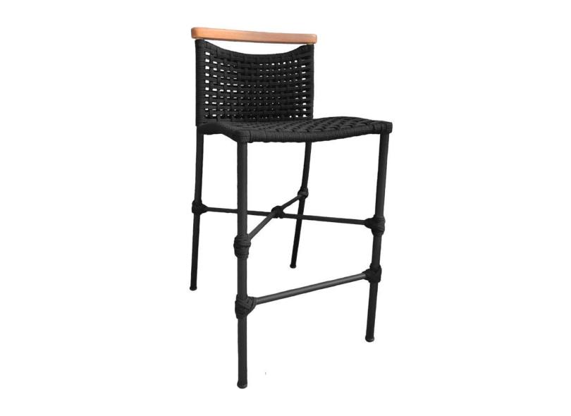 Banqueta Anne em Corda Náutica Base em Alumínio Preta com Detalhe em Madeira Preta