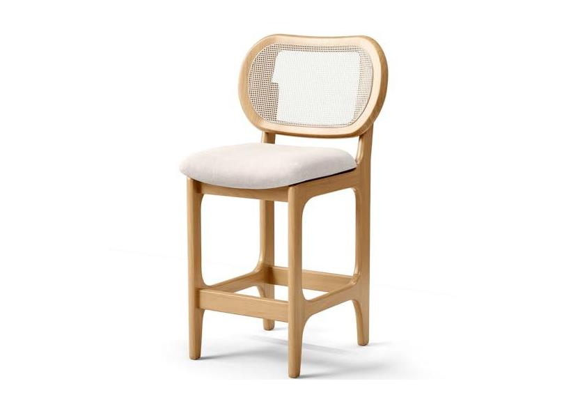 Banqueta Baixa Bar Cozinha Sala de Jantar Betta L02 Mel Tela Linho Cru - Lyam Decor