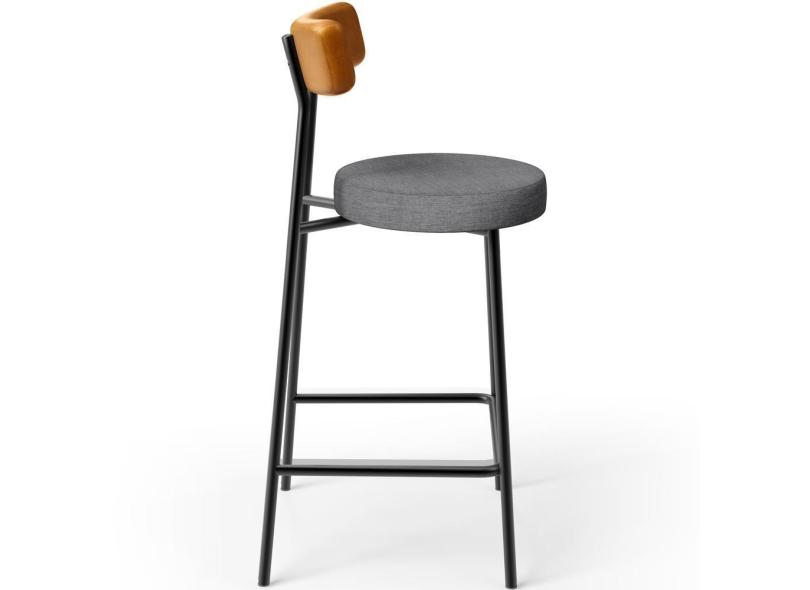 Banqueta Baixa Bar Cozinha Sala De Jantar Milão L02 Couríssimo Whisky Cinza Escuro - Lyam Decor