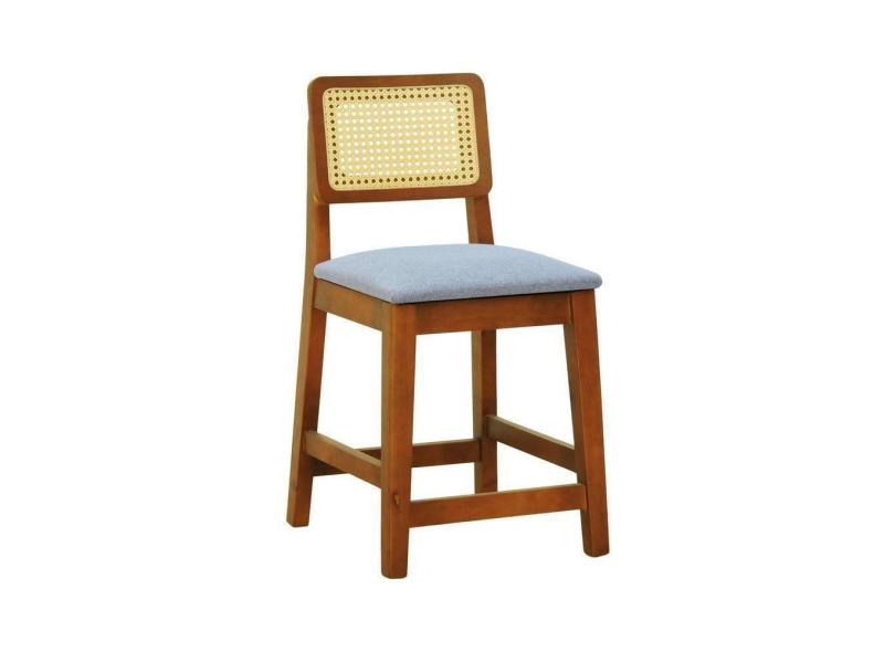 Banqueta Baixa-cadeira Gabi Madeira Maciça Encosto Telinha - Amêndoa Assento Estof. Linho Cinza Mescla Impermeável