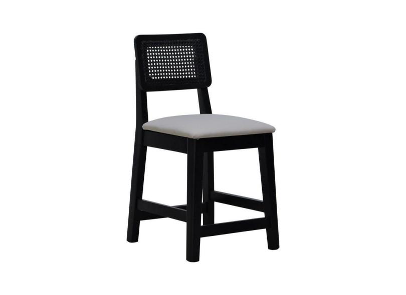 Banqueta Baixa-cadeira Gabi - Preto Assento Estofado Linho Bege