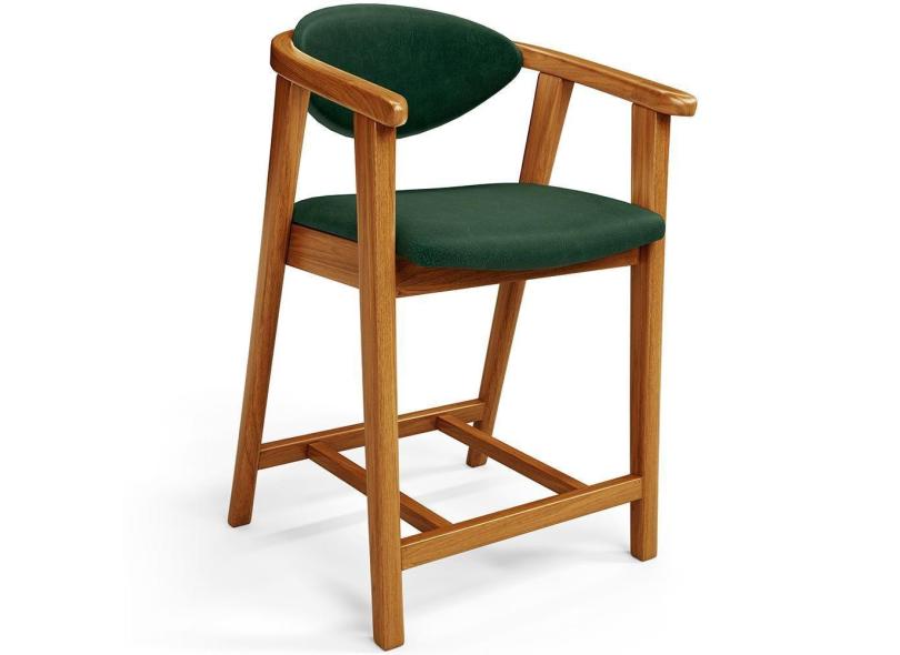 Banqueta Baixa Para Cozinha Bancada Cecília L02 Couríssimo Verde Musgo