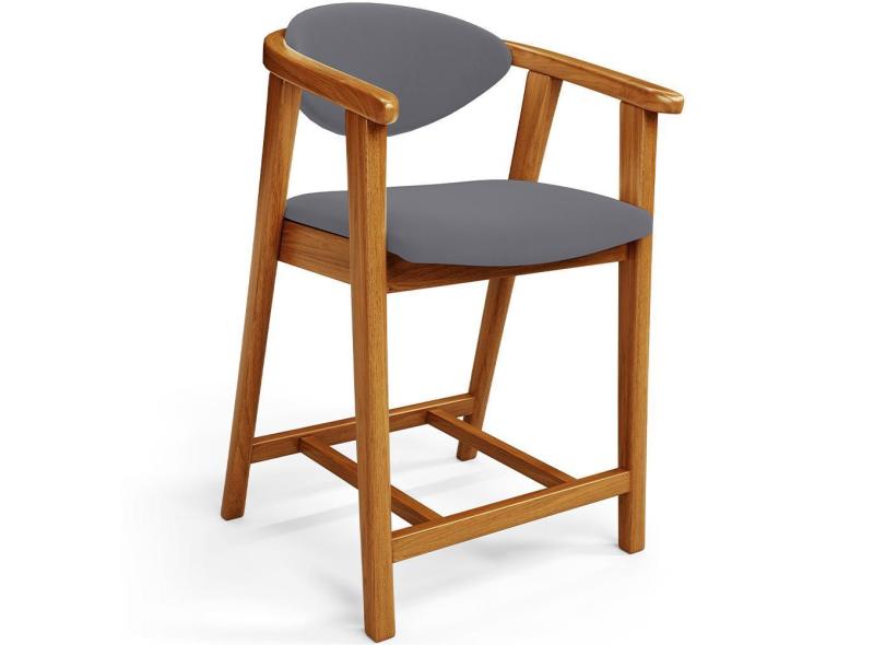Banqueta Baixa Para Cozinha Sala de Jantar Bancada Cecília L02 Suede Cinza - Lyam Decor