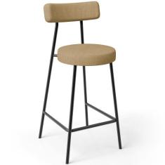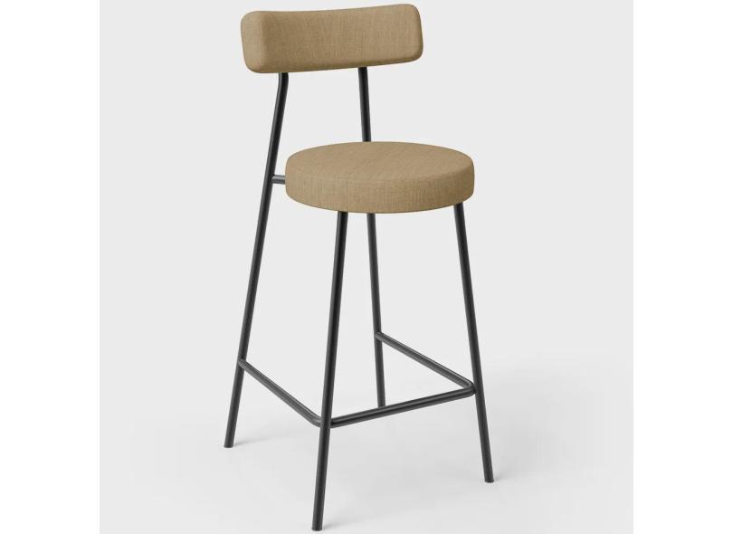 Banqueta Baixa Para Cozinha Sala De Jantar Bar Bancada Milão L02 Linho Bege Escuro - Lyam Decor