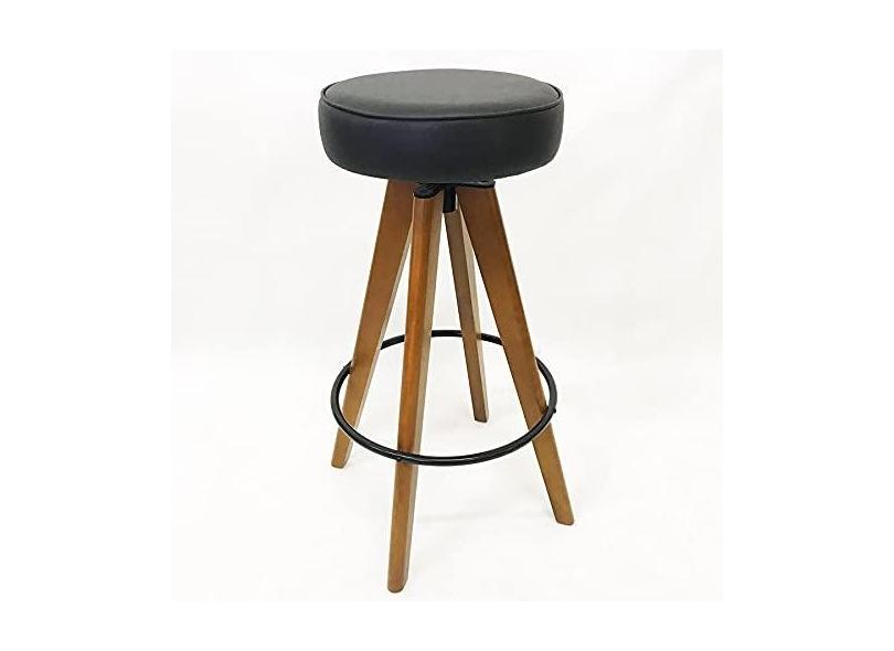 Banqueta Bar Alta Base Madeira Giratória Assento Preto - Poltronas do Sul