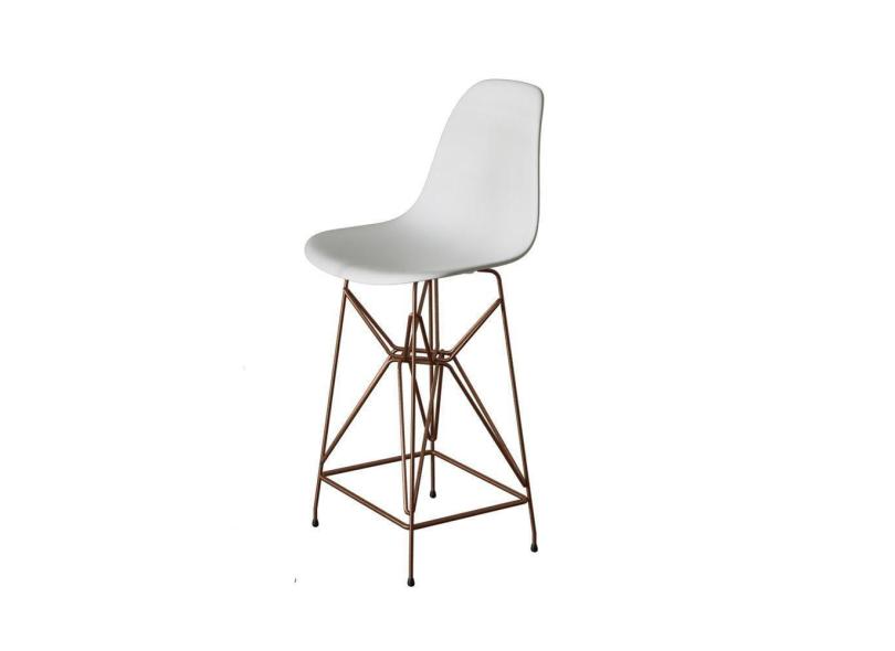 Banqueta Bistrô Alta Eames Branca Base Ferro Cobre - Cor: Branco