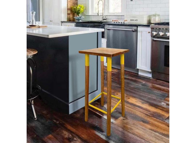 Banqueta Bistro Industrial Colors Ferro E Madeira Maciça - Amarela Amarelo