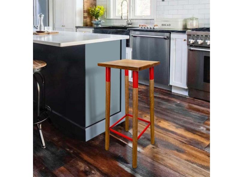 Banqueta Bistro Industrial Colors Ferro E Madeira Maciça - Vermelha Vermelho