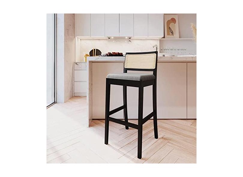 Banqueta com Encosto e Apoio para Pés Tiê Cabecasa Madeiramadeira Preto/cinza
