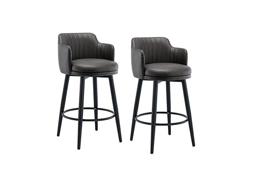 Banqueta de Balcão de Cozinha Redonda com Pés de Metal Preto e Apoio de Pés Redondo Preto Estofado Assento de Couro Napa para Cozinha/sala de Jantar/sala de Estar Conjunto de 2