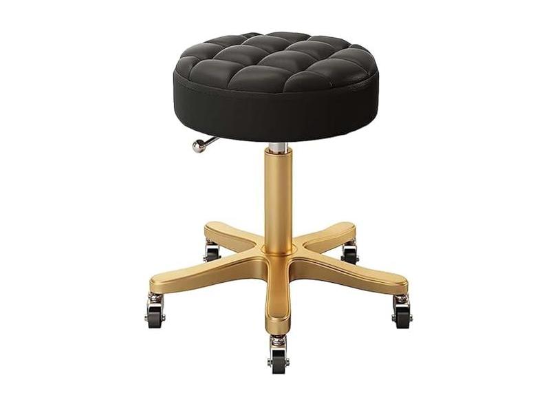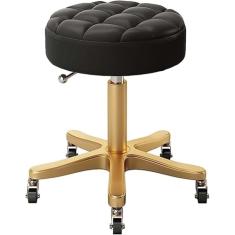 Banqueta de oficina de trabalho com altura ajustável para serviço pesado com rodas, não é fácil de enrolar o cabelo dourado, banqueta giratória de couro PU de 440 Ib com rolamento de carga p
