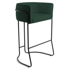 Banqueta Decorativa Base Aço Preto Verde Musgo