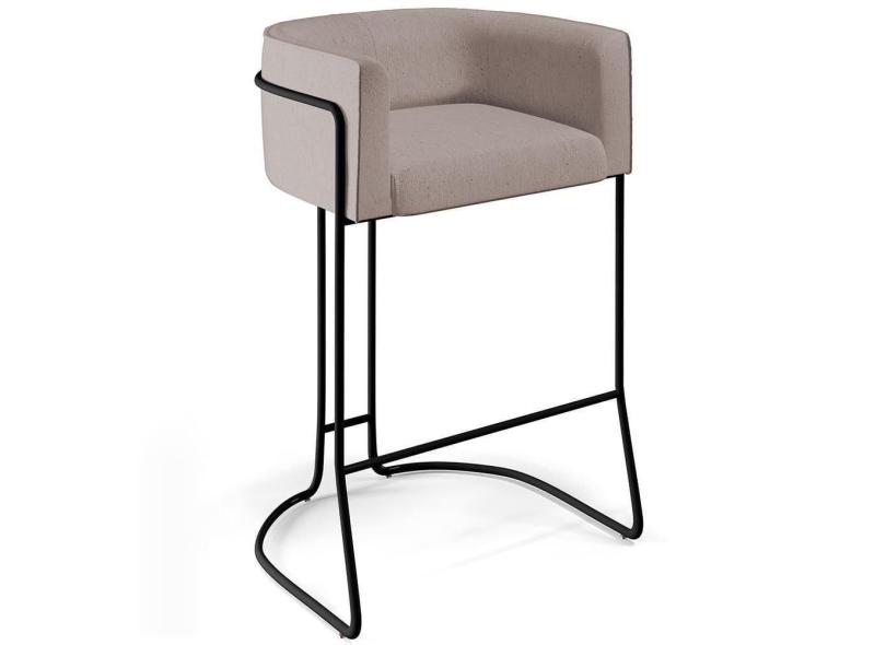 Banqueta Decorativa Base De Aço Preto Betina D02 Bege C-107