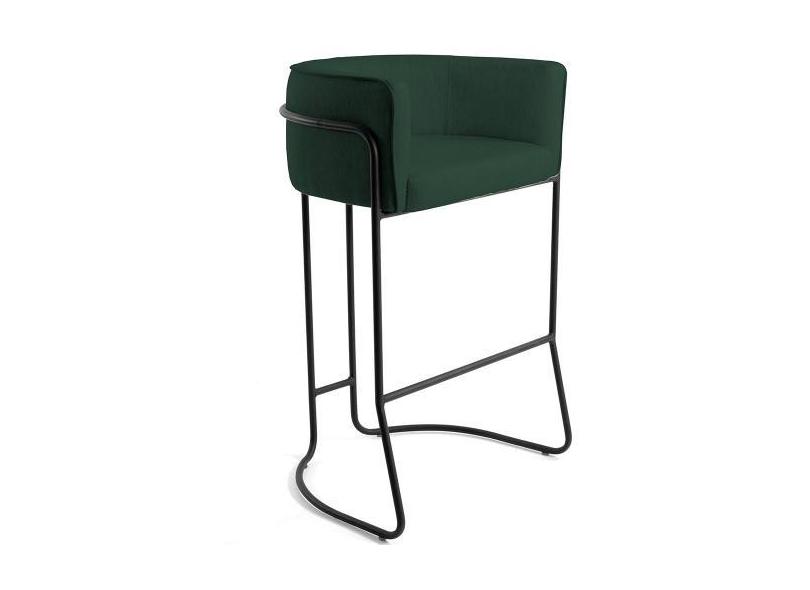 Banqueta Decorativa Fixa Base de Aço Preto Betina D02 Linho Verde Musg