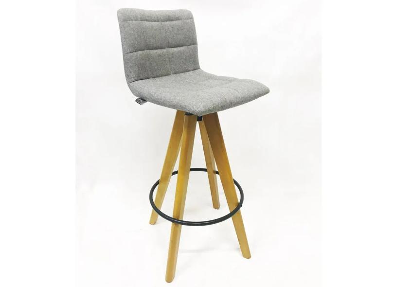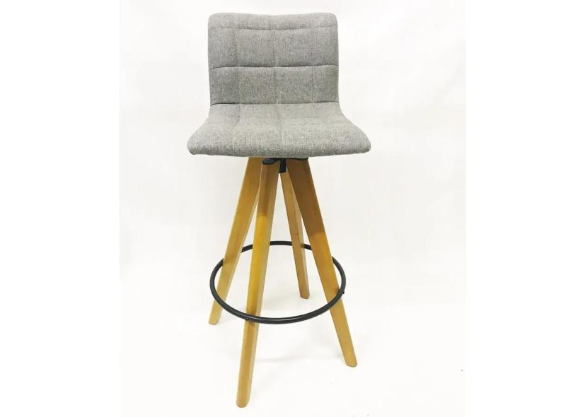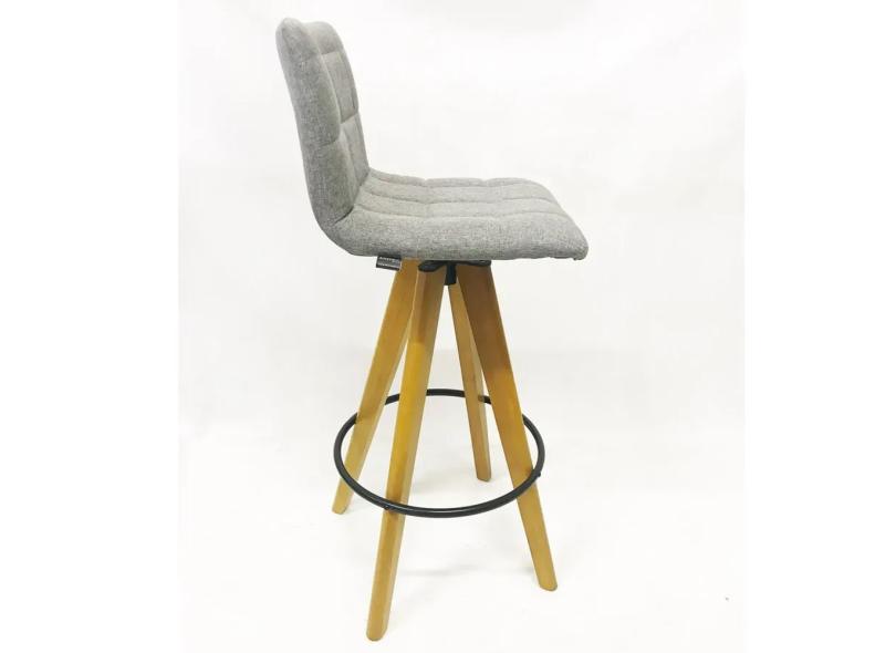 Banqueta Decorativa Jaque Gomos Linho Base Giratória Madeira - Poltronas do Sul