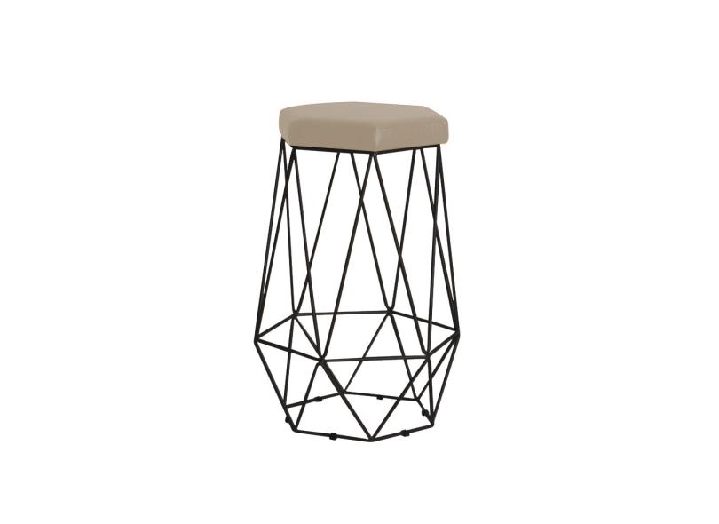 Banqueta Decorativa Rubel Base Veludo Bege - Gran Belo