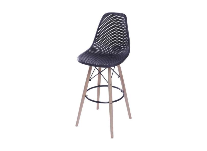 Banqueta Eames Dsw Colmeia Em Polipropileno Preta Base Madeira