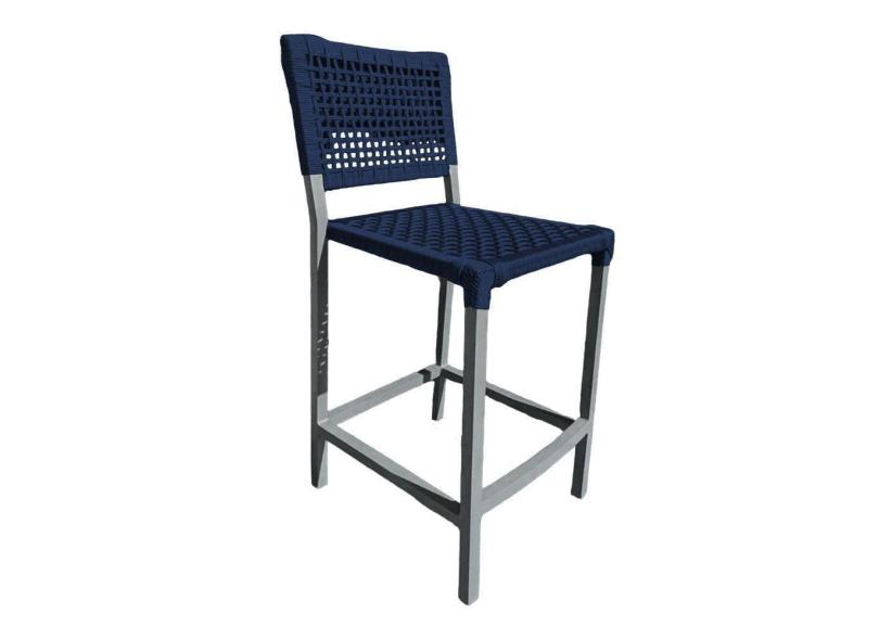Banqueta França Em Corda Náutica E Base Em Alumínio Cinza Para área Gourmet Azul Marinho - Cor: Azul