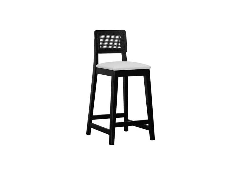 Banqueta Gabi 68cm Altura Madeira Maciça Encosto Telinha Assento Estofado Corano Preto/Bege