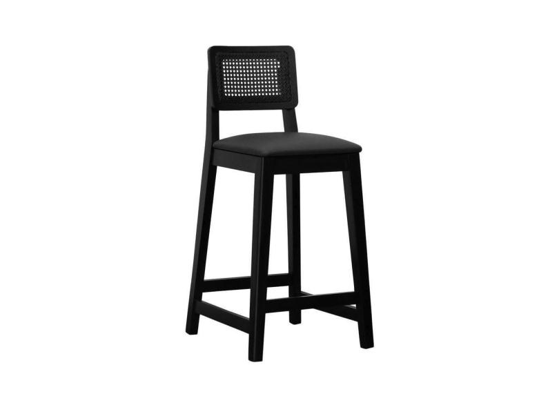 Banqueta Gabi Madeira Maciça Encosto C- Telinha C- 68cm Altura - Preto Assento Estofado Corano Preto