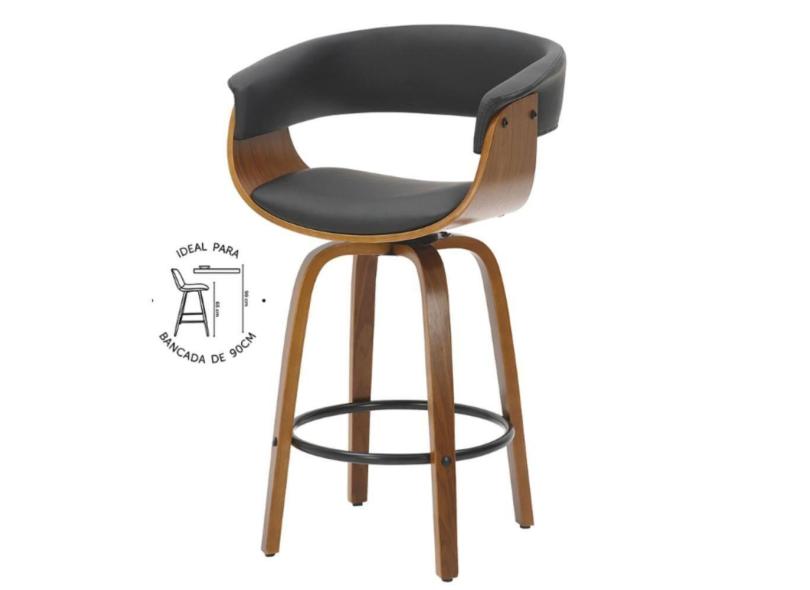 Banqueta Giratória Baixa Betim Rivattis Preta Base Madeira