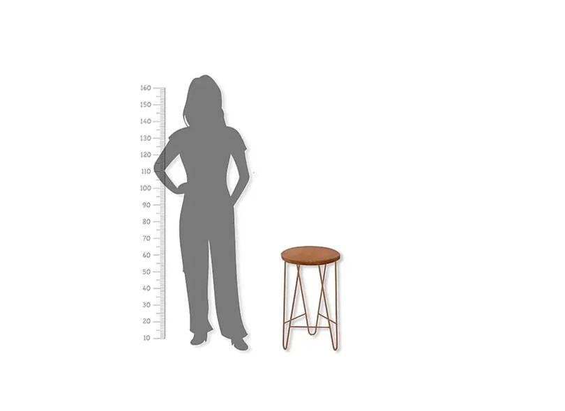 Banqueta Kika - 60 cm altura - Cor Estrutura: Coral - Tampo em Madeira Maciça- Banco de Ferro e Madeira - Mesa Lateral - Estilo Vintage e Industrial - Oficina Barnello
