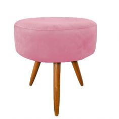 Banqueta Magnus Redondo Suede Rosê Pés Palitos Castanho