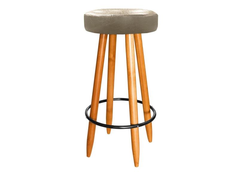 Banqueta Média 75cm Madeira Cozinha Balcão Ilha Courino Bege