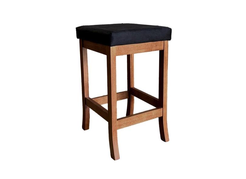 Banqueta Média Barcelona 64 Cm Madeira Maciça Suede Preto CCS