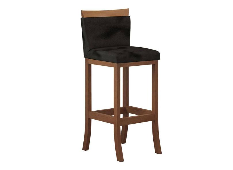 Banqueta Média Encosto Estofado 38 x 92 Cm Paris Madeira Maciça Castanho Suede Preto CCS