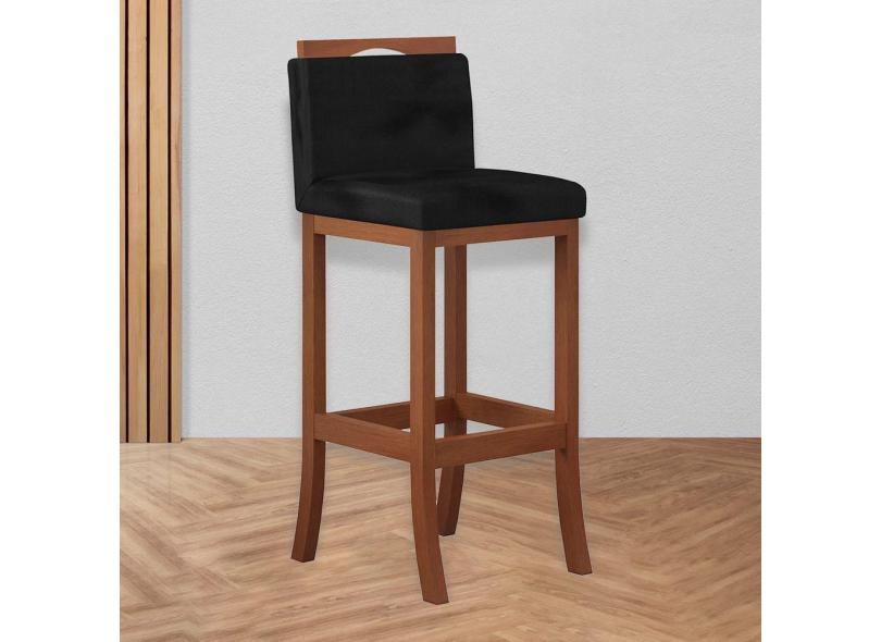 Banqueta Média Encosto Estofado 38 x 92 Cm Turim Madeira Maciça Castanho Suede Preto CCS