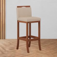 Banqueta Média Encosto Estofado 38 x 92 Cm Turim Madeira Maciça Pinhão Suede Bege CCS