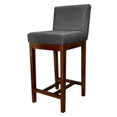 Banqueta Média Estofada com Encosto Lisboa Madeira Capuccino Suede Cinza CCS